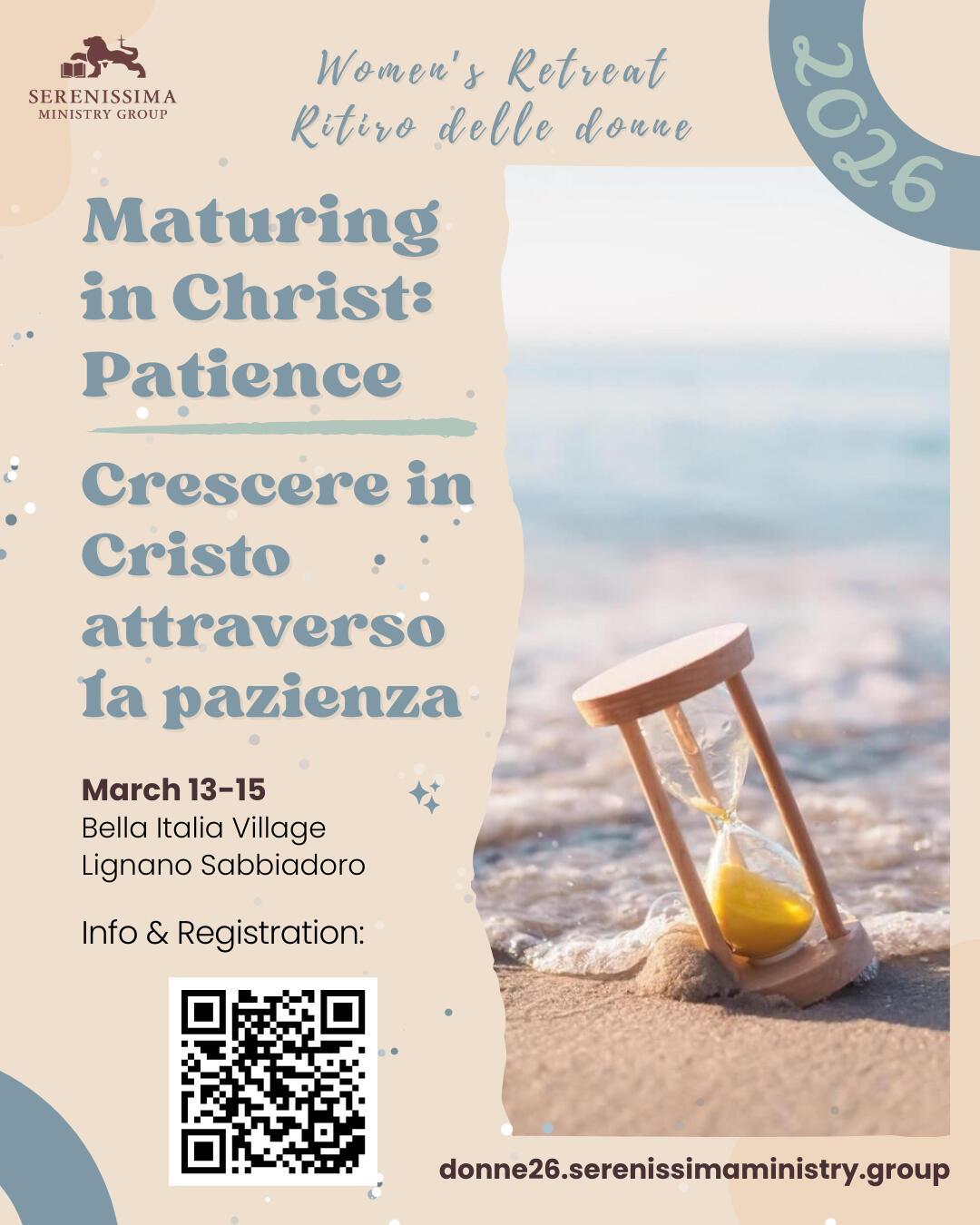 🇺🇸 This is the signup form for our Ladies discipleship retreat 2026. We're really looking forward to being by the seaside in the town of Lignano with you this year! Please note that the retreat is only open to ladies/teens who are already attending one of the Serenissima Ministry Group Churches. Please look for your church on the registration form.